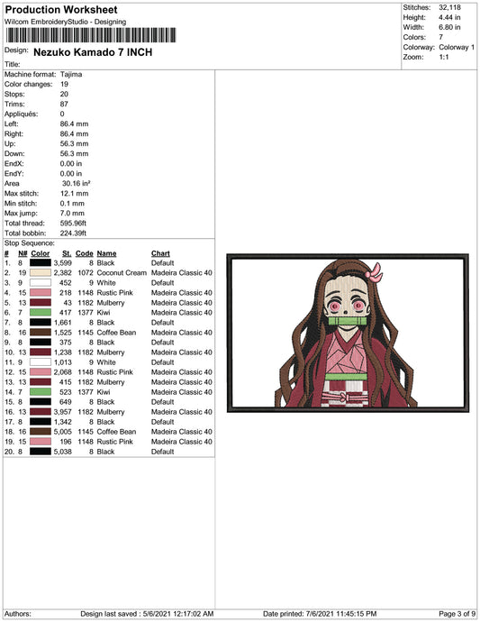 Nezuko Kamado v8 Embroidery Design Files - 4 Size's