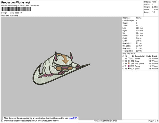 Avatar Appa Swoosh v2 Embroidery Design Files - 4 Size's
