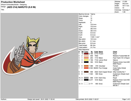 Naruto Uzumaki v8 Embroidery Design Files - 3 Size's