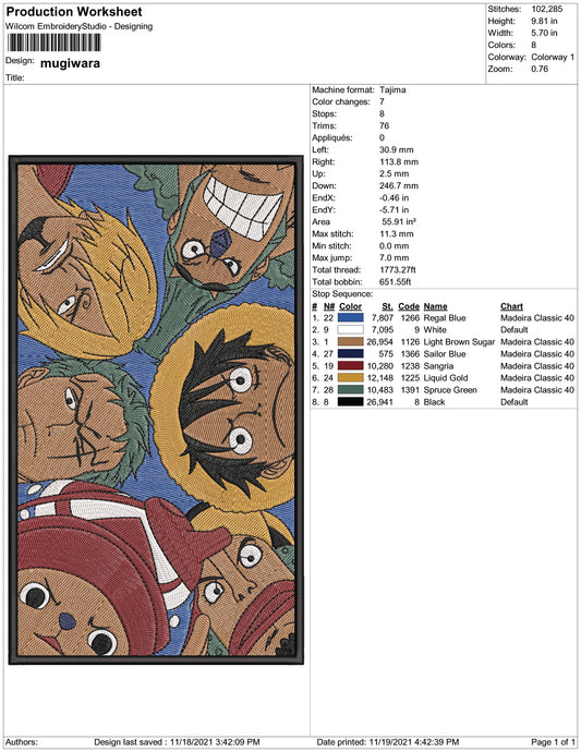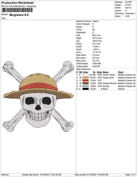 Mugiwara Logo Embroidery Design Files - 1 Size