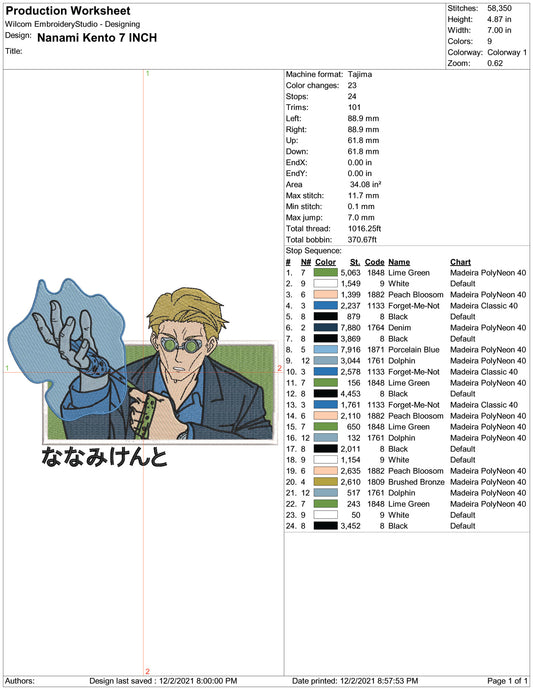 Kento Nanami v3 Embroidery Design Files - 4 Size's