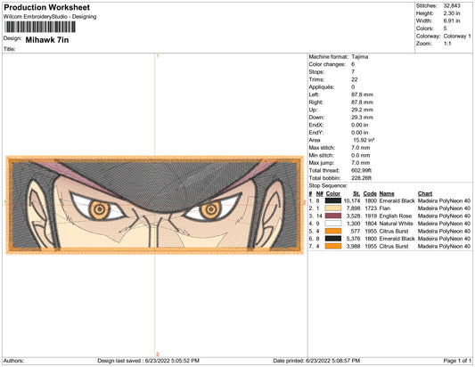Dracule Mihawk Embroidery Design Files - 3 Size's