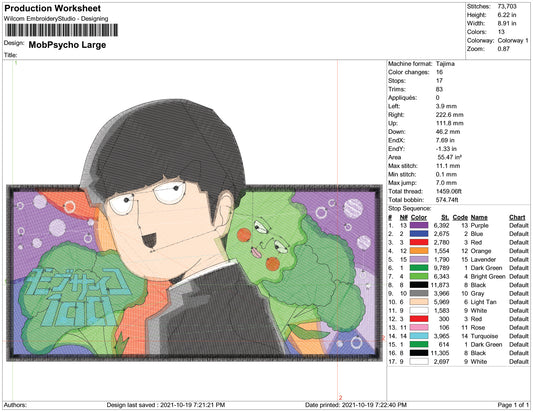 Mob Psycho 100 v4 Embroidery Design Files - 3 Size's