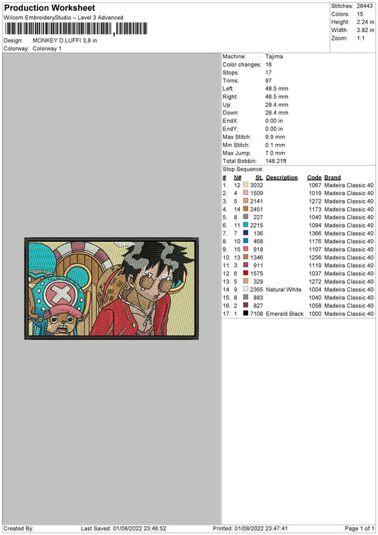 Monkey D Luffy v18 Embroidery Design Files - 4 Size's