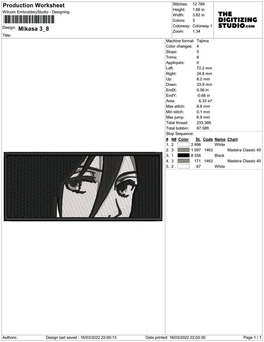 Mikasa Ackerman v5 Embroidery Design Files - 5 Size's