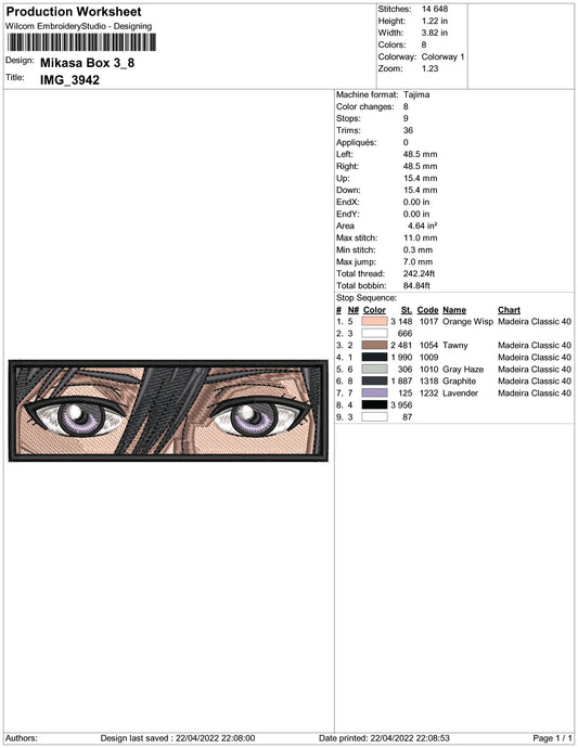 Mikasa Ackerman Eyes v2 Embroidery Design Files - 3 Size's