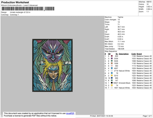 Minato Namikaze v2 Embroidery Design Files - 4 Size's