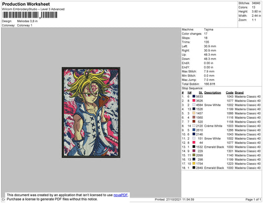 Meliodas v2 Embroidery Design Files - 4 Size's
