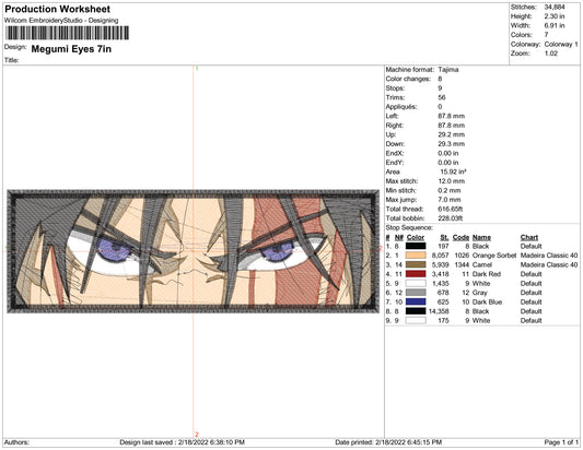 Megumi Eyes Embroidery Design Files - 3 Size's