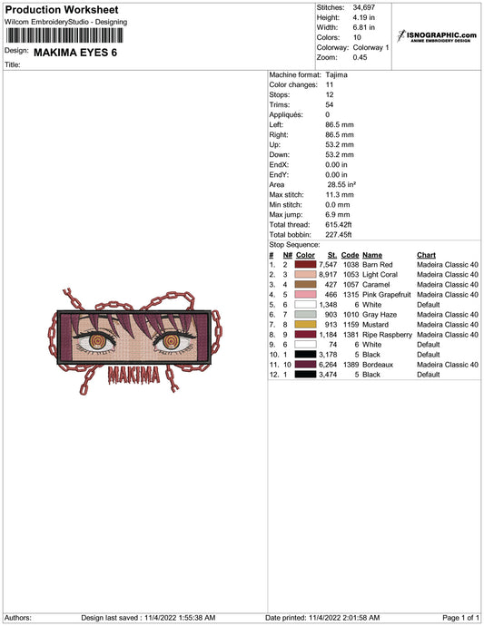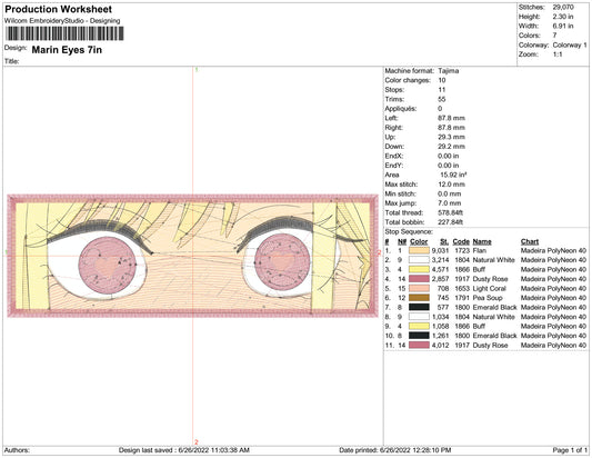 Marin Kitagawa Eyes Embroidery Design Files - 3 Size's