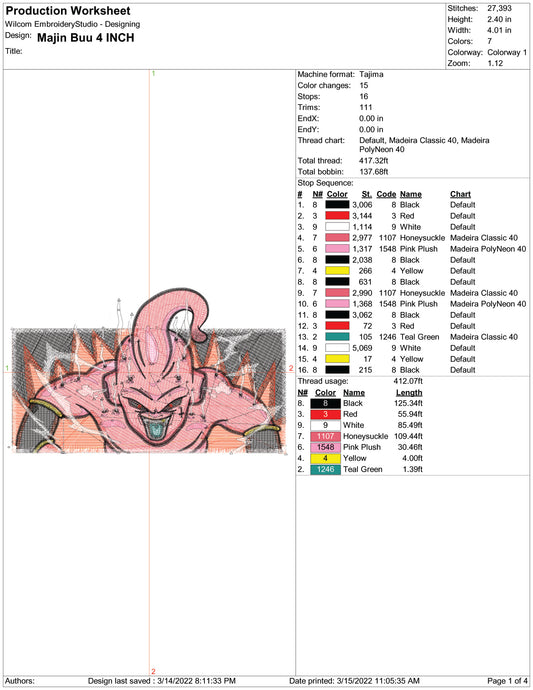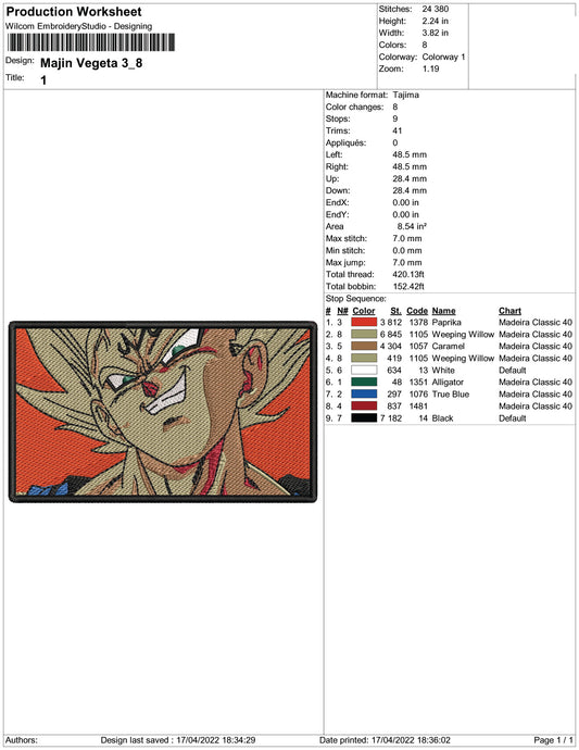 Majin Vegeta Embroidery Design Files - 3 Size's