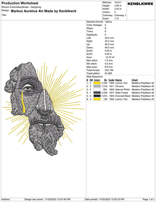 Markus Aurelius Embroidery Design Files - 2 Size's
