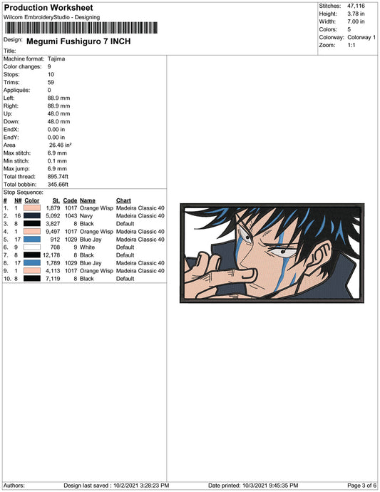 Megumi Fushiguro v3 Embroidery Design Files - 4 Size's