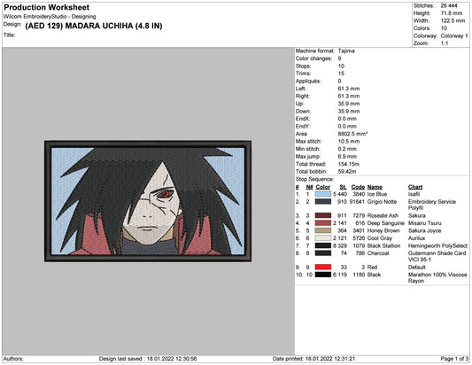 Madara Uchiha v2 Embroidery Design Files - 4 Size's