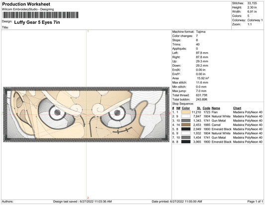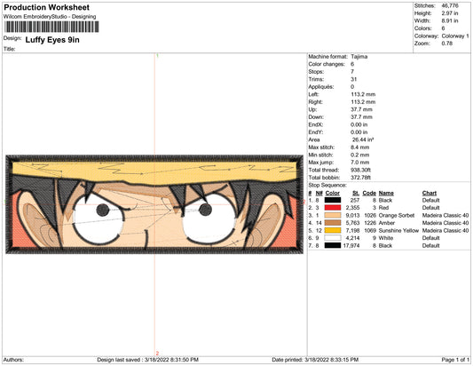 Monkey D Luffy Eyes Embroidery Design Files - 3 Size's