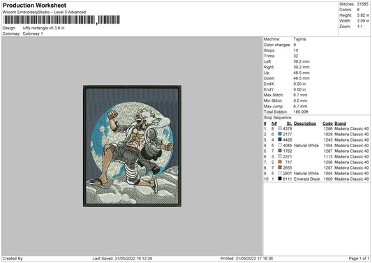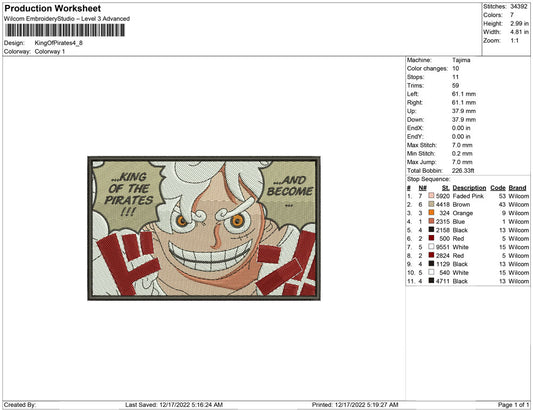 Monkey D Luffy v16 Embroidery Design Files - 4 Size's