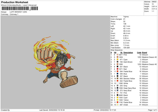 Monkey D Luffy v17 Embroidery Design Files - 4 Size's