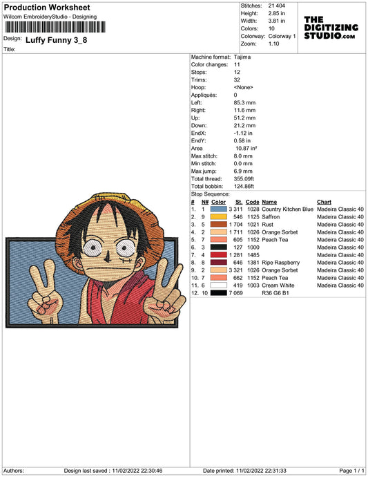Monkey D Luffy v13 Embroidery Design Files - 3 Size's