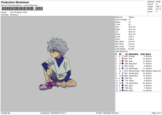 Killua Zoldyck v11 Embroidery Design Files - 4 Size's