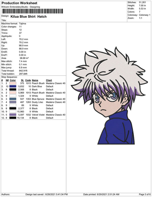 Killua Zoldyck v7 Embroidery Design Files - 4 Size's