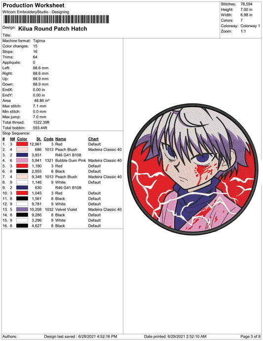 Killua Zoldyck Round Patch Embroidery Design Files - 4 Size's