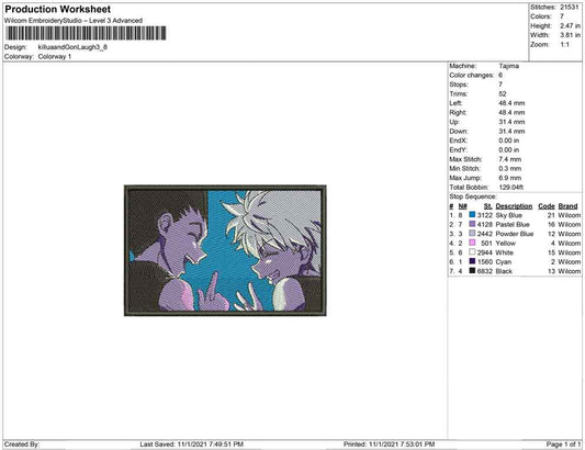 Killua Zoldyck v8 Embroidery Design Files - 4 Size's