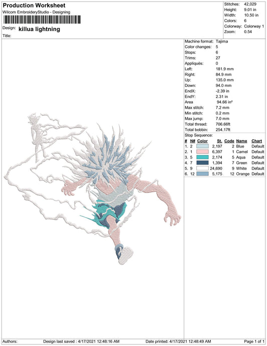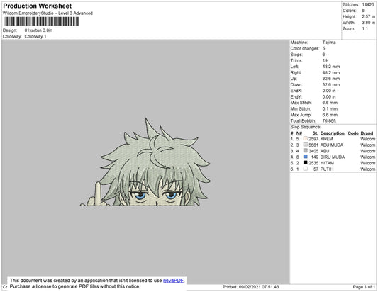 Killua Zoldyck v9 Embroidery Design Files - 5 Size's