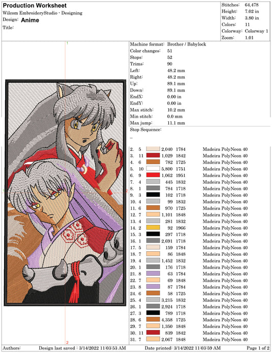 Inuyasha X Sesshomaru Embroidery Design Files - 1 Size