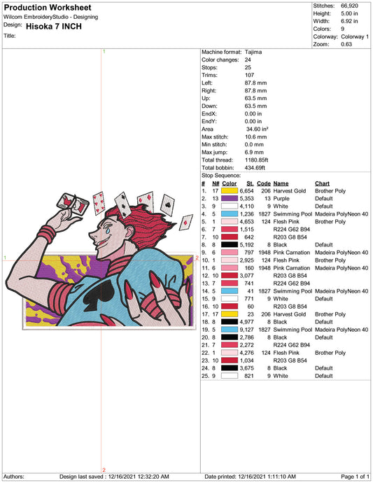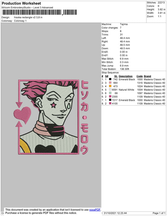 Hisoka v4 Embroidery Design Files - 4 Size's
