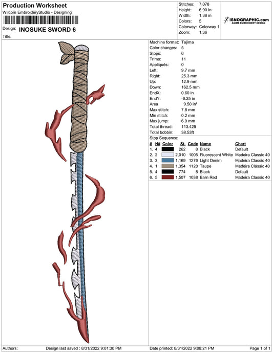Inosuke Sword Embroidery Design Files - 7 Size's