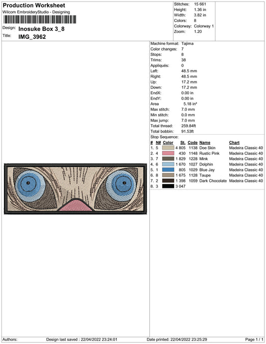 Inosuke Hashibira v6 Embroidery Design Files - 3 Size's