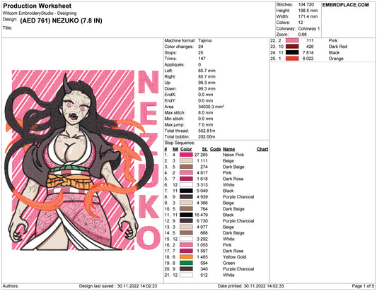 Nezuko Kamado v6 Embroidery Design Files - 5 Size's