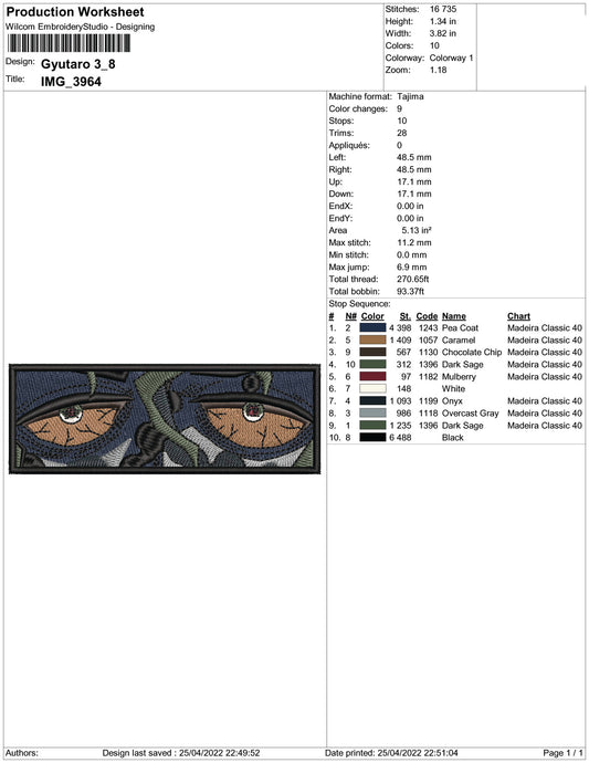 Gyutaro Eye v2 Embroidery Design Files - 3 Sizes