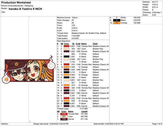 hanako & Yashiro Embroidery Design Files - 5 Size's