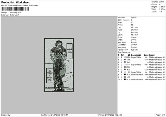Hanma Yujiro Embroidery Design Files - 4 Size's
