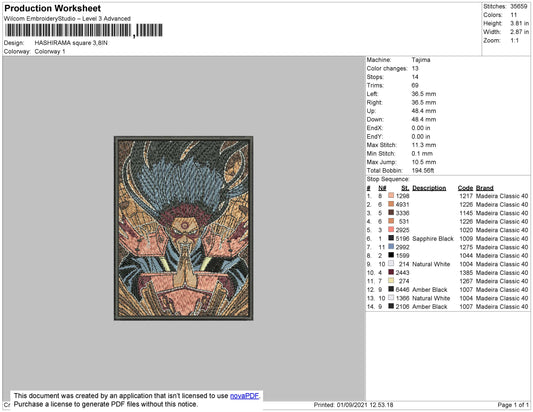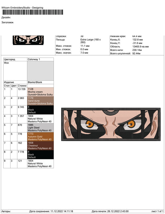 Hashirama Senju v2 Embroidery Design Files - 3 Size's