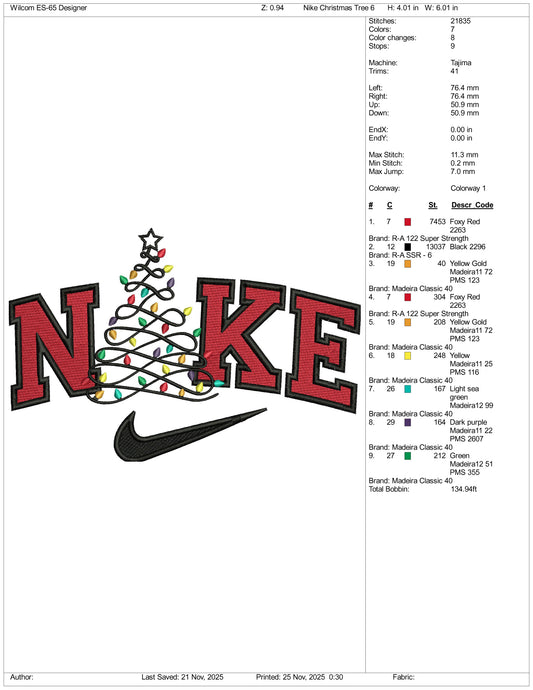 Nike Christmas Tree v3 Embroidery Design Files - 3 Size's