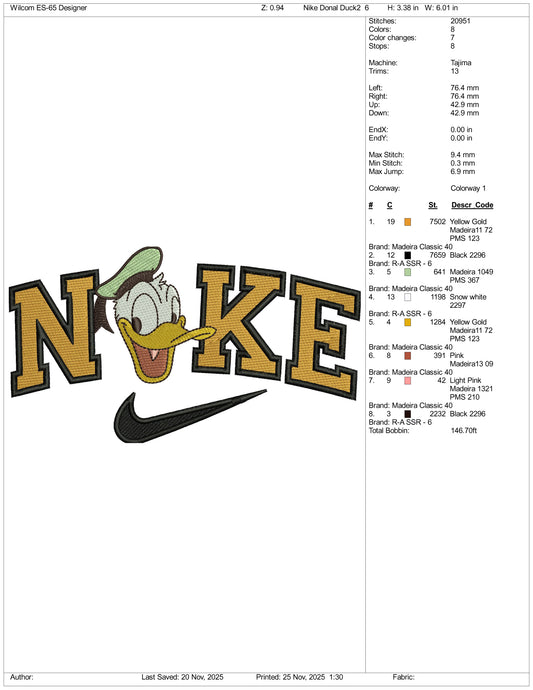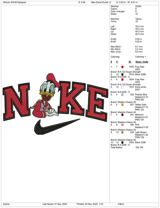 Nike Donald Duck v10 Embroidery Design Files - 3 Size's