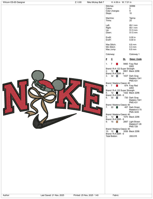 Nike Mickey Mouse v21 Embroidery Design Files - 3 Size's