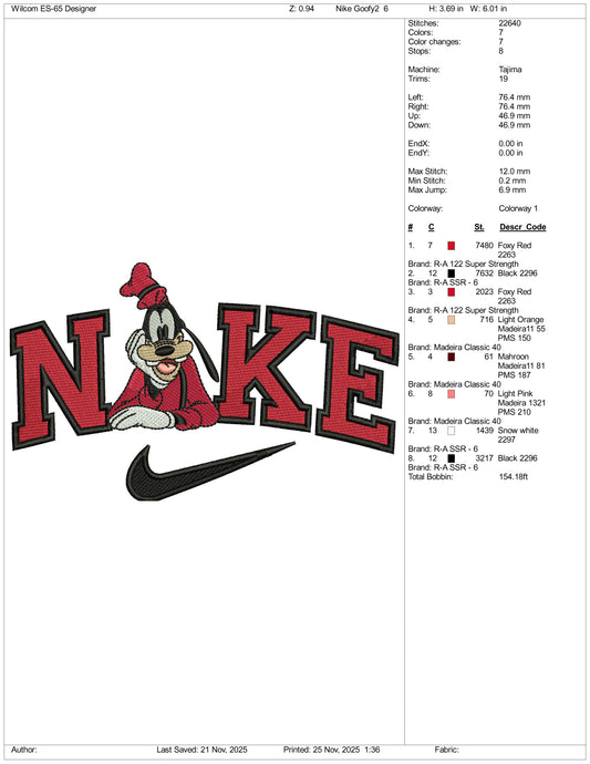 Nike Goofy v6 Embroidery Design Files - 3 Size's