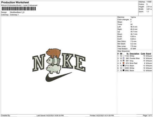 Nike Bare Bears Embroidery Design Files - 4 Size's