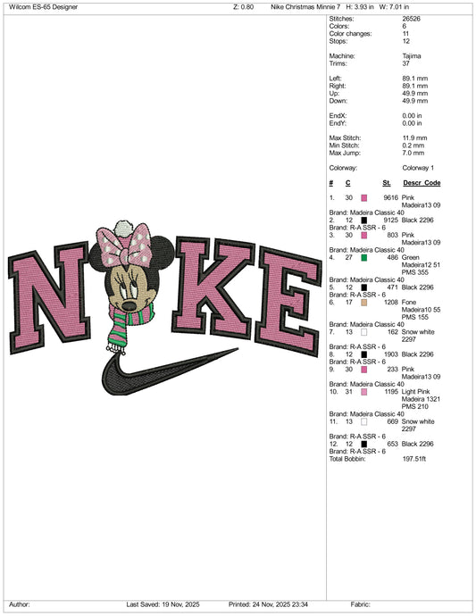 Nike Minnie Mouse v11 Embroidery Design Files - 3 Size's