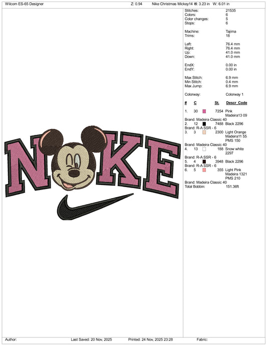 Nike Mickey Mouse v14 Embroidery Design Files - 2 Size's