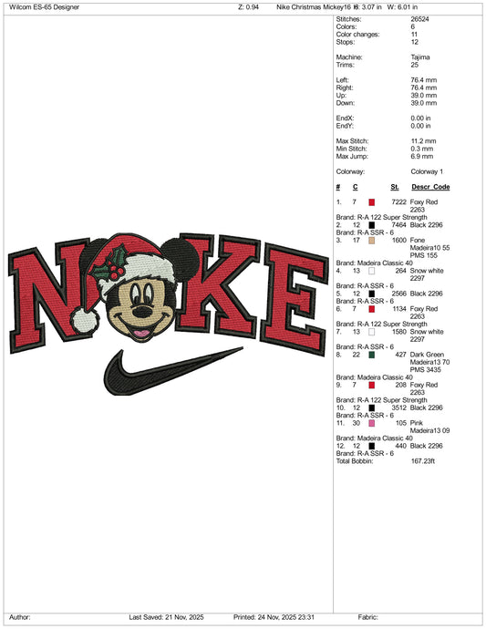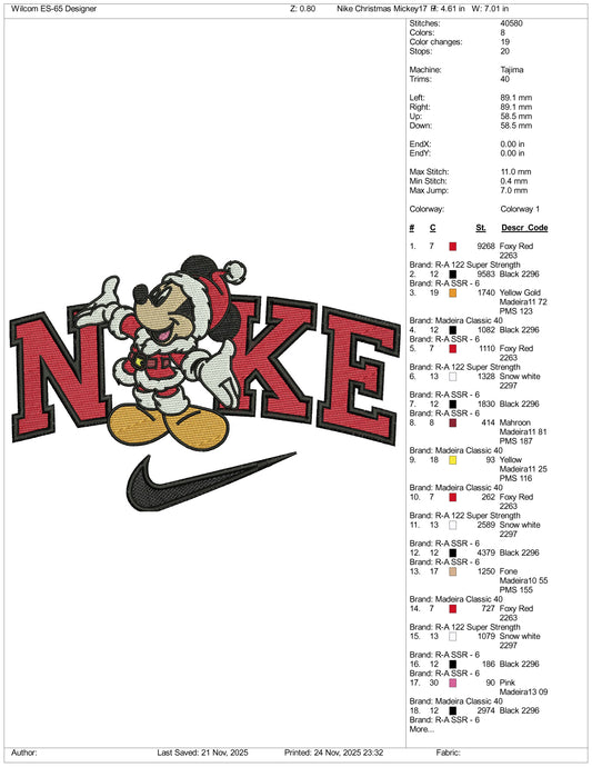 Nike Mickey Mouse v16 Embroidery Design Files - 3 Size's