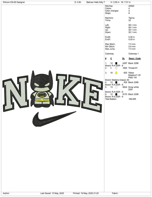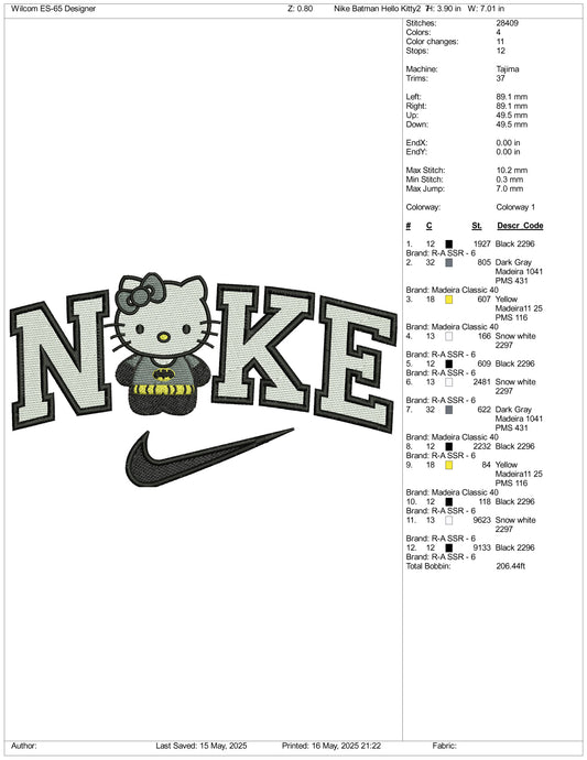 Nike Hello Kitty Batman Embroidery Design Files - 3 Size's