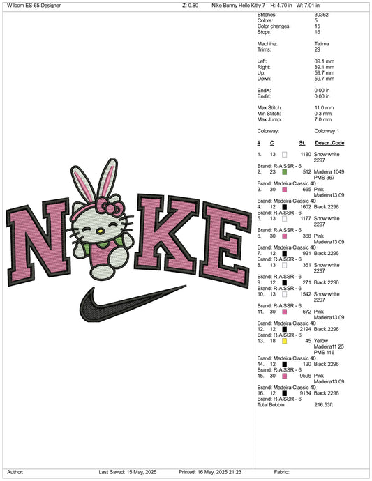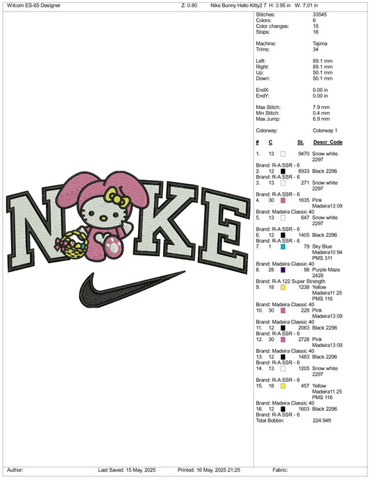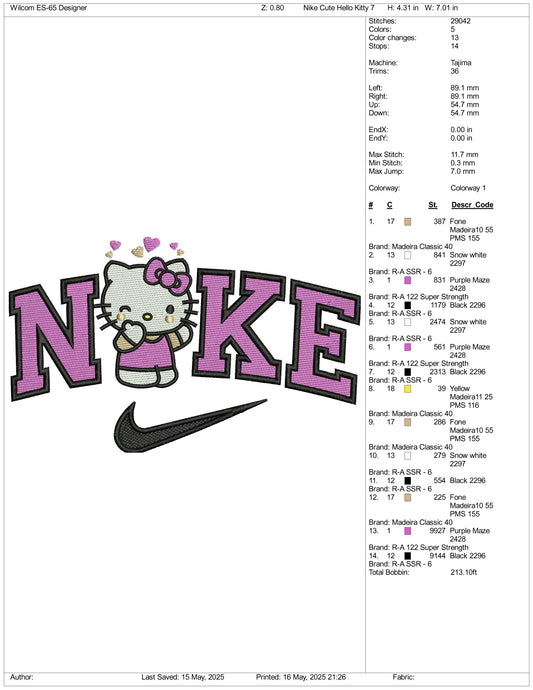 Nike Hello Kitty Jazmin Bean Embroidery Design Files - 3 Size's
