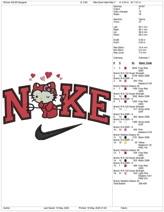 NIke Hello kitty Devil Embroidery Design Files - 3 Size's
