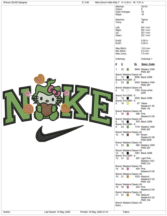 NIke Hello Kitty Grinch Embroidery Design Files - 3 Size's