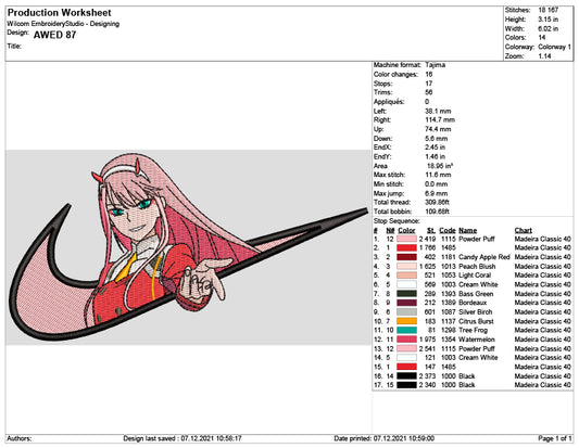 Zero Two Swoosh v3 Embroidery Design Files - 4 SizesPrecio habitual $6.99 USDPrecio habitualPrecio unitario / por-