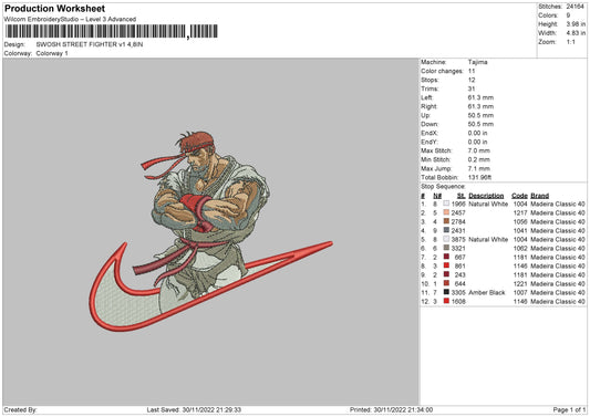 Ryu Street Fighter Swoosh Embroidery Design Files - 5 Size'sPrecio habitual $6.99 USDPrecio habitualPrecio unitario / por-